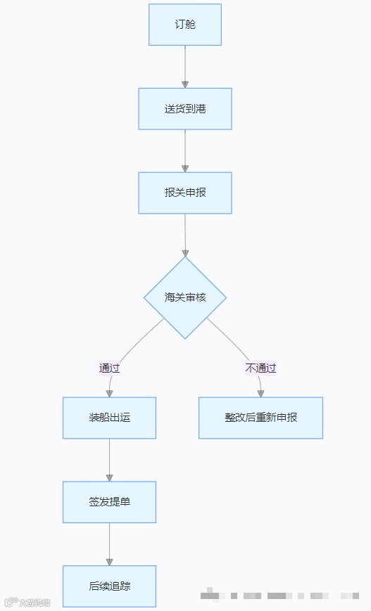 从订舱到货物抵达目的港,出口海运的主要流程如下: