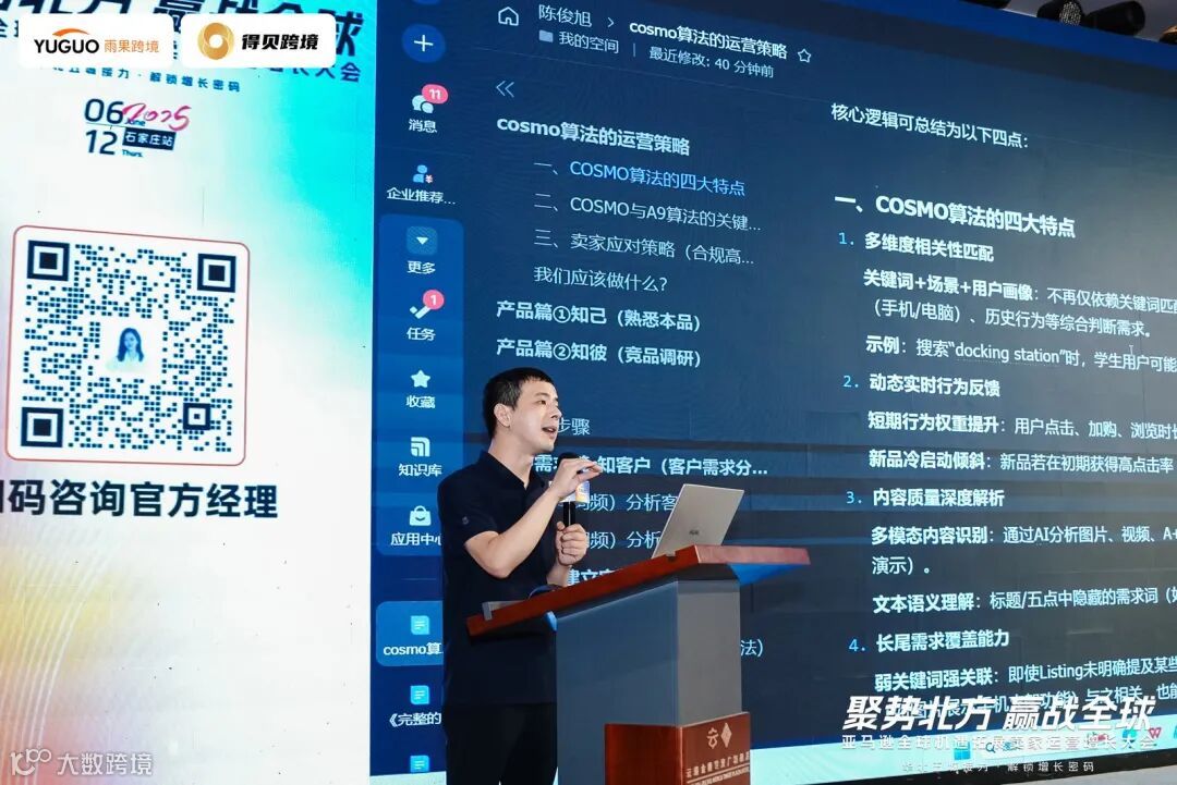 围绕COSMO算法的深度解析,卖家讲师陈俊旭探讨了如何借势智能引擎实现流量突围。