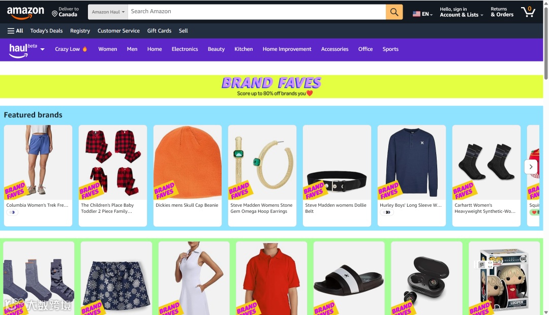 此外,值得注意的是,亚马逊旗下Haul频道也在策略上出现拐点——新增“Brand Faves”专区,引入Adidas、Levi’s、Gap等美国家喻户晓品牌,并采用美国本地仓履约,大幅削弱了此前依赖中国直发的供应路径。商品售价也早已突破原有20美元上限,部分价格与主站持平。