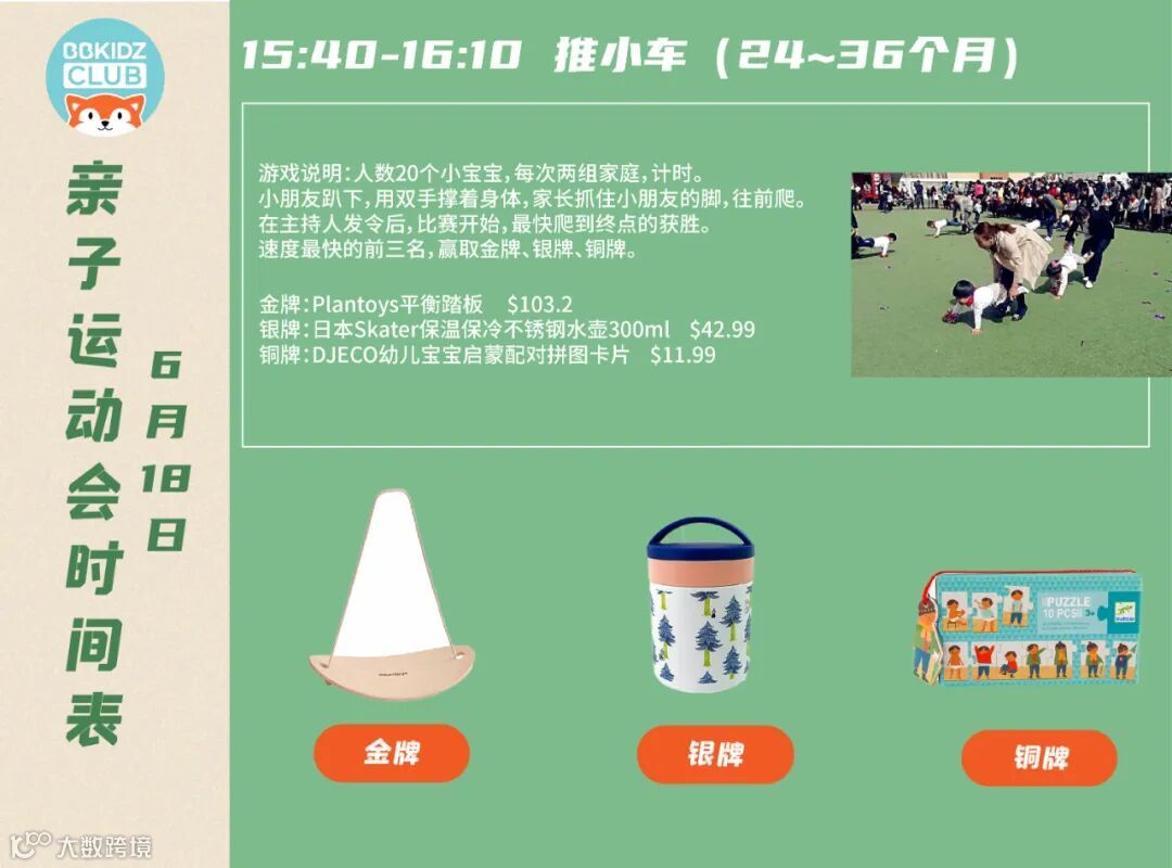 每个项目都有金牌、银牌、铜牌三个奖项,宝宝与爸爸一起体验登上领奖台领奖,一起领取宝宝人生中的第一张奖状,给宝宝满满的仪式感~