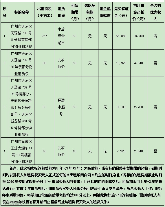 4.标的序号4:竞买人须具备干洗或洗涤相关服务的资质等证明(营业执照经营范围应符合拍卖标的租赁用途的业态要求)。
