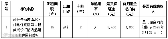 受委托,我公司定于2025年3月25日10时整在国拍在线网拍平台www.gwgponline.com对以下租赁权标的进行公开拍卖: