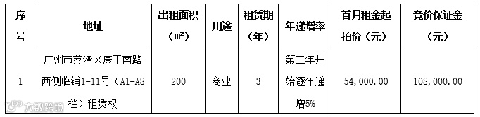 受委托,我公司定于2025年9月24日10时整在国拍在线网拍平台www.gwgponline.com以“一次性报价”方式对以下物业租赁权进行公开竞价。