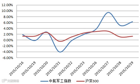 军工指数年度走势及军工指数对比沪深300指数双周涨跌幅