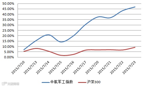 军工指数年度走势及军工指数对比沪深300指数双周涨跌幅