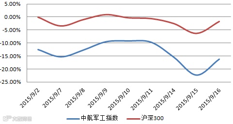 军工指数年度走势及军工指数对比沪深300指数双周涨跌幅