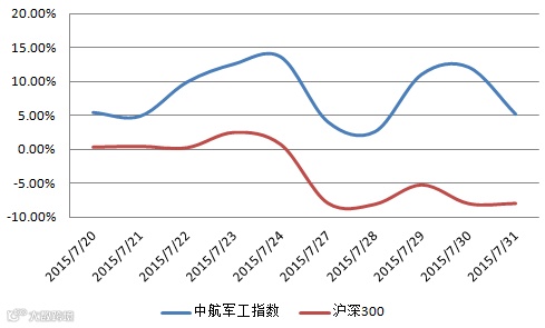 军工指数年度走势及军工指数对比沪深300指数双周涨跌幅
