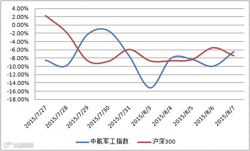 军工指数年度走势及军工指数对比沪深300指数双周涨跌幅