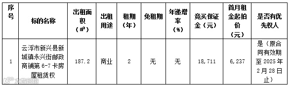 受委托,我公司定于2025年1月22日10时整在国拍在线网拍平台www.gwgponline.com对以下租赁权标的进行公开拍卖: