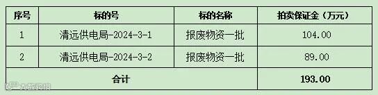受广东电网有限责任公司委托,我公司于2024年6月17日15时00分公开拍卖清远市2个标包电力报废物资一批(详细标包号、拍卖方式、起拍价、拍卖保证金请登录网址:https://www.bidding.csg.cn 进行查询)。