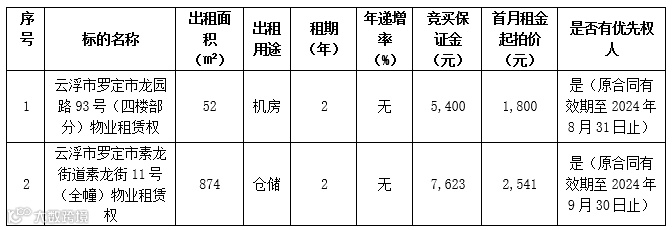 1、此次拍卖标的按现状进行拍卖,现均有原租赁人在经营使用,原租赁人在同等价位享有优先竞租权;拍卖成交后,租赁权买受人需自行办理相关经营手续或相关政府部门备案,办理过程中产生的一切费用均由租赁权买受人负责承担;如因产权、规划用途等问题造成租赁权买受人不能办理开业相关证照的,其风险责任和费用由租赁权买受人自行承担,委托方和拍卖人不承担任何责任;竞买人应实地查看了解房屋的现状及相关费用,并对拍卖标的房屋的权利状况、相应资质、行政审批手续等自行调查了解。竞买人成功办理竞租报名手续,即视为其对标的现状无异议,并对存在或可能存在的瑕疵表示认可,且承诺因存在或可能存在的瑕疵造成的风险由竞买人自行承担。
