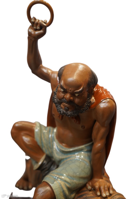 石湾陶塑自晚清至今销往世界各地,民间亦多有收藏。十八罗汉是指佛教传说中十八位永住世间、护持正法的阿罗汉,由十六罗汉加二尊者而来。这一题材深入民间,自唐宋以来即成为中国绘画与雕塑中的重要主题。此组《十八罗汉》,胎釉深厚朴实,造型生动传神,既是石湾窑陶塑“渔、樵、耕、读”典型品类的传统延续,也开创了石湾窑大型人物组塑的先河,是中国现当代陶瓷工艺美术史上具有划时代意义的代表之作。
