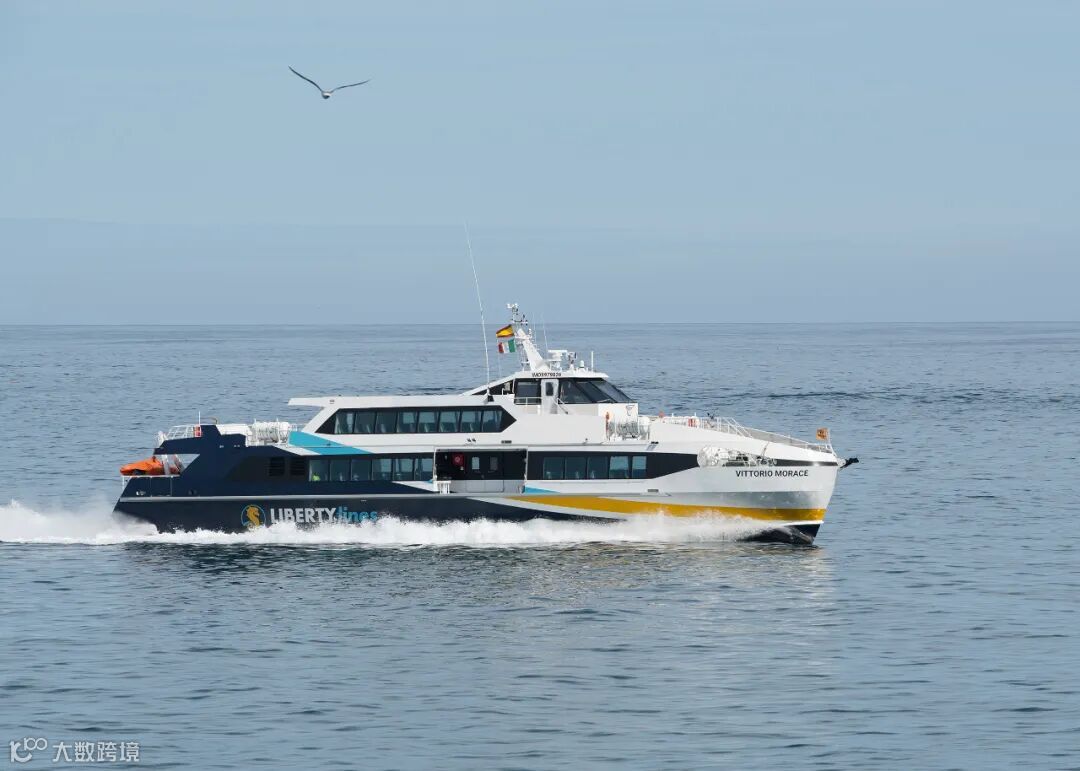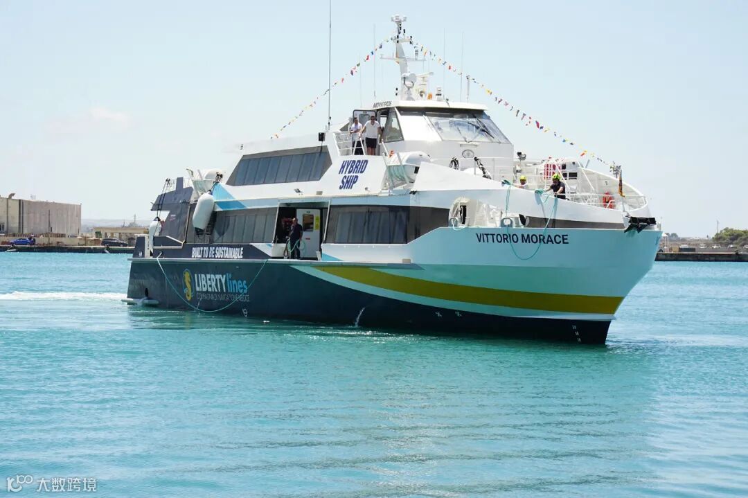 近日,意大利航运公司Liberty Lines在西西里岛的特拉帕尼举行了隆重的仪式,正式推出这一类别和尺寸的全球首艘混合动力高速渡轮。这艘船舶全长39.5米,能够容纳251名乘客,航速超过30节,并由罗罗动力系统提供的mtu混合动力推进系统驱动,这将大幅降低船舶运营对环境的影响。这艘名为“Vittorio Morace”的渡轮由西班牙Astilleros Armon船厂建造,设计方为Incat Crowther。它不仅是全球首艘符合IMO HSC(高速船)标准的混合动力高速渡轮,同时被意大利船级社RINA评为 “Green Plus”环保船舶。