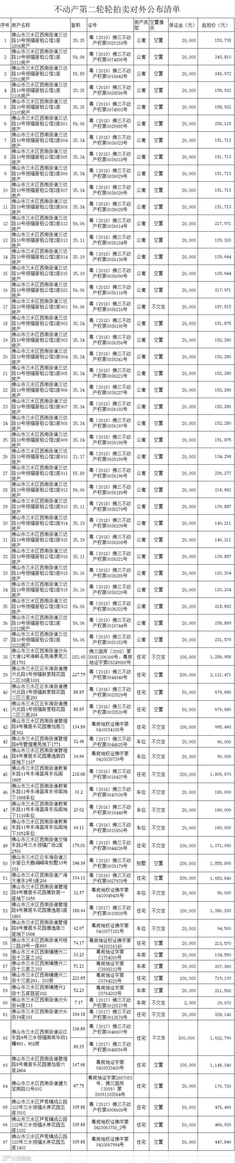 受委托,兹定于2022年7月13日上午10时至7月14日上午10时(延时除外)阿里资产处置平台(网址:https://zc-paimai.taobao.com/)公开拍卖涉案财产一批:佛山市三水区西南街道恒福丽铂公馆、海畔名苑、雅居乐花园、东海南湾、恒福广场和云东海街道恒福新里程花园、芦苞镇恒福水岸花园等地57套房产及10个车位(房)