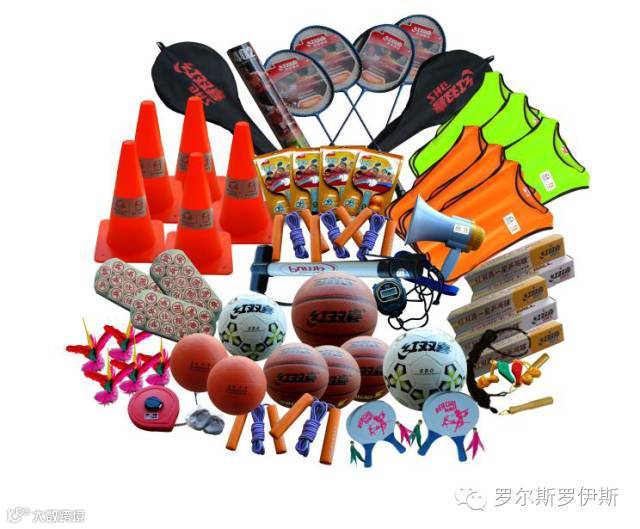 体育包里包括篮球、羽毛球拍,标志物、口哨等团体活动的器材