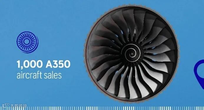 由遄达XWB提供动力的空客A350飞机销售超过1000架。