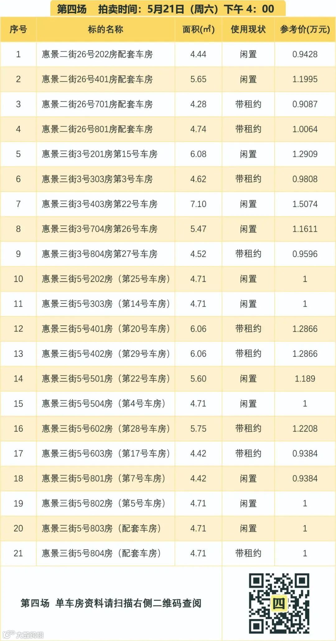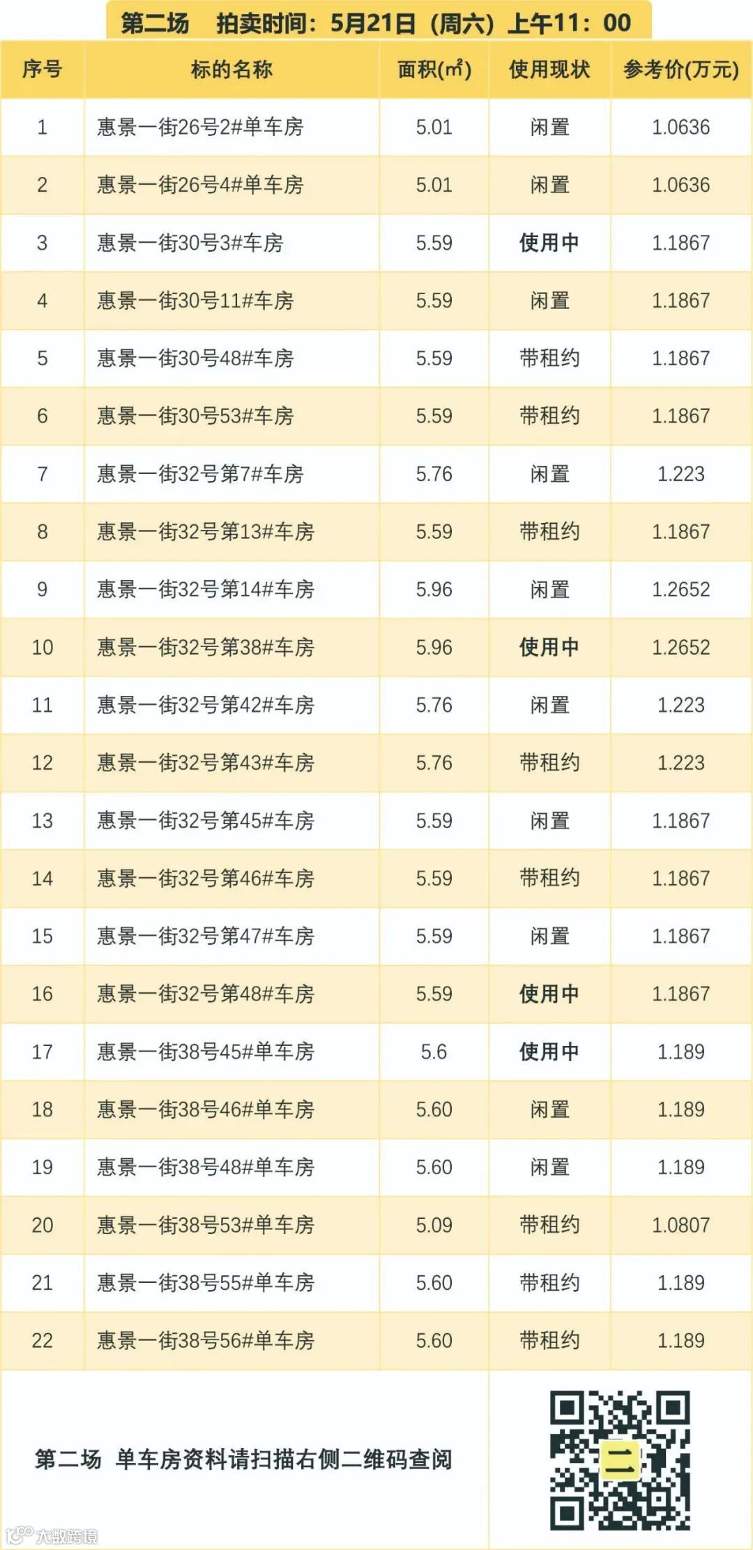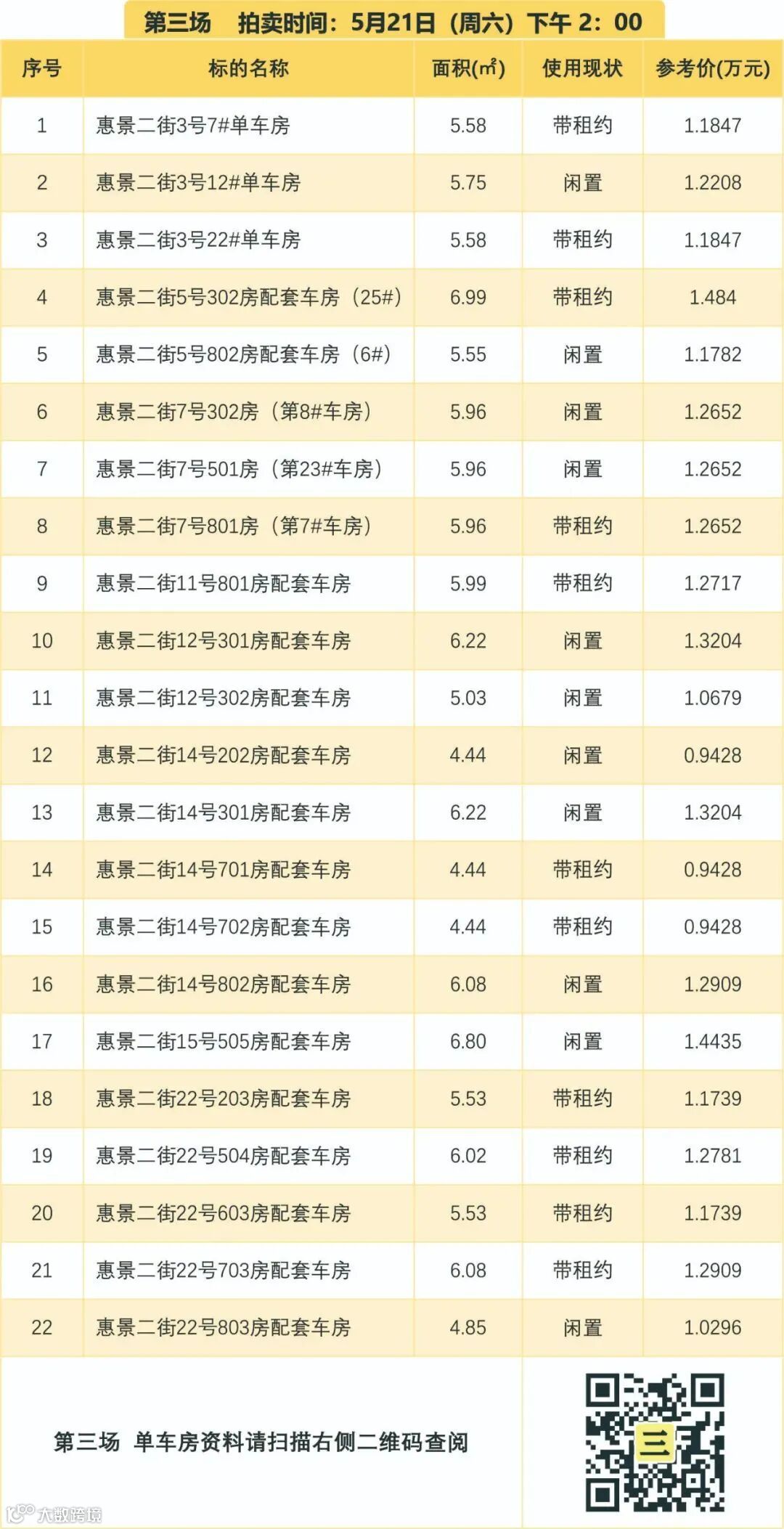 受佛山市机关事务管理局委托,广东国锤拍卖有限公司、广东国际拍卖有限公司定于2022年5月21日-22日在佛山市禅城区绿景一路惠景城小区北门水池旁平台(惠景二街19、21号原佛山市城市展览馆对面)举行8场拍卖会,对以下惠景城小区156个住宅配套单车房进行公开拍卖。
