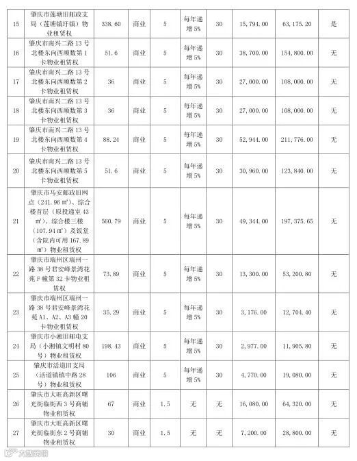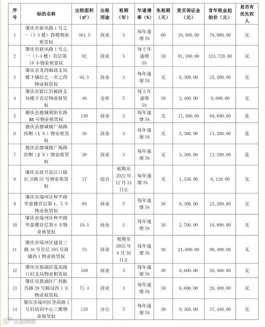 上述物业按现状出租,其中序号5-7及序号15标的现有原租赁人在经营使用,原租赁人在本场拍卖会上具有同等价位优先竞租权;序号12-13标的只持有土地证复印件,序号22-23标的只持有房产合同;上述物业拍卖成交后,如因产权问题造成租赁权买受人不能办理开业相关证照的,其风险和费用由租赁权买受人自行承担。
