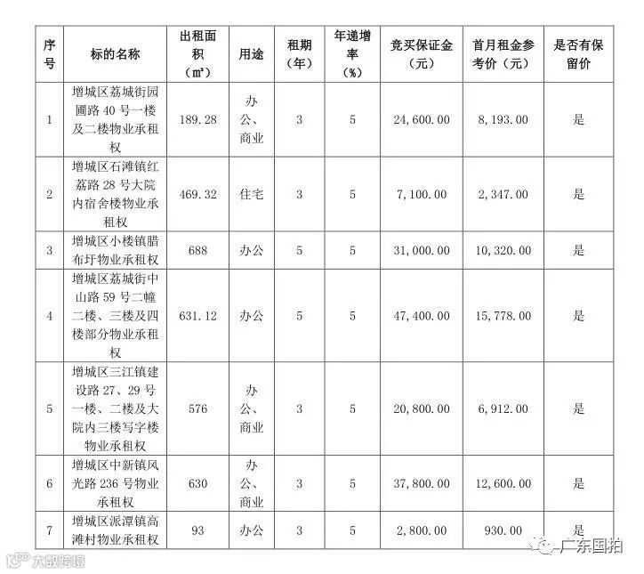 增城区荔城街园圃路40号一楼及二楼等7宗物业承租权(保证金、物业出租需求、招租面积、用途、租金起拍价等信息详见我公司网站:www.gdgpfang.com)