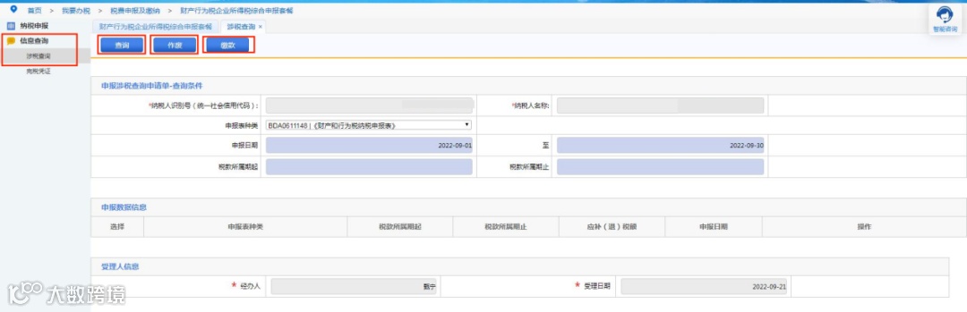 如需查询申报状态、作废申报、缴纳税款或下载打印报表,可点击页面左侧“信息查询—涉税查询”。