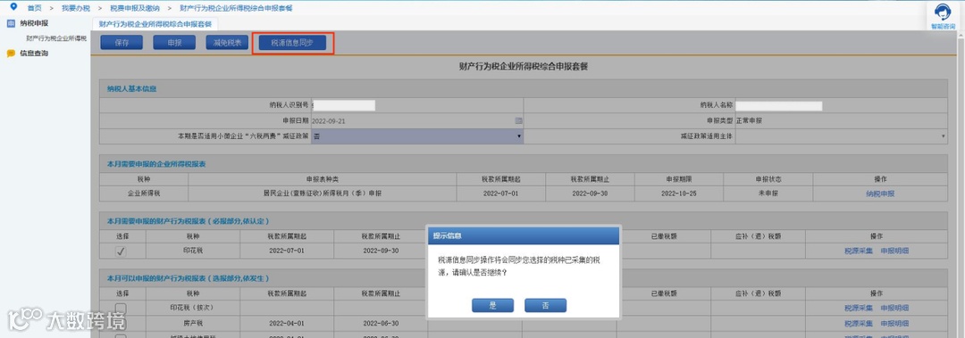 点击“税源信息同步”按钮,系统同步已采集税源的“应纳税额”、“减免税额”等信息。