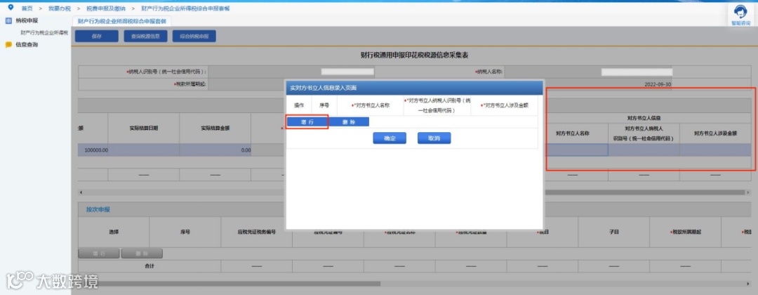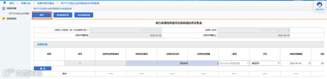 系统会自动将实际结算金额列所有金额相加,填写进实际结算金额项,自动同步到计税金额中,实际结算日期自动取税款所属期止项的值。
