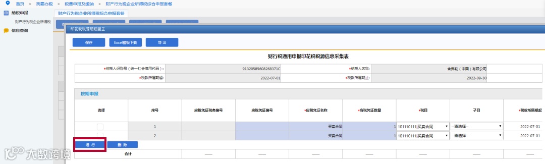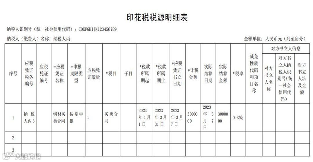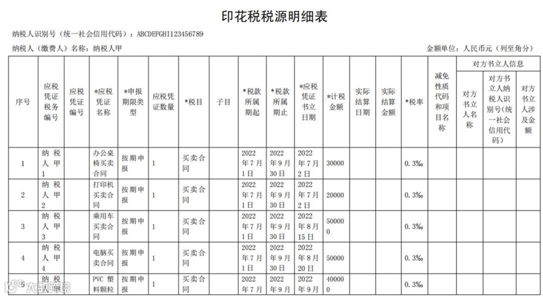 ➤ 《印花税税源明细表申报》