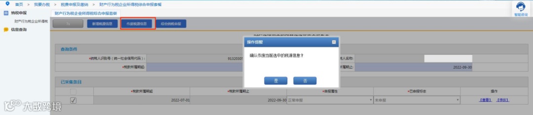 点击“作废税源信息”按钮可以作废已采集税源信息。
