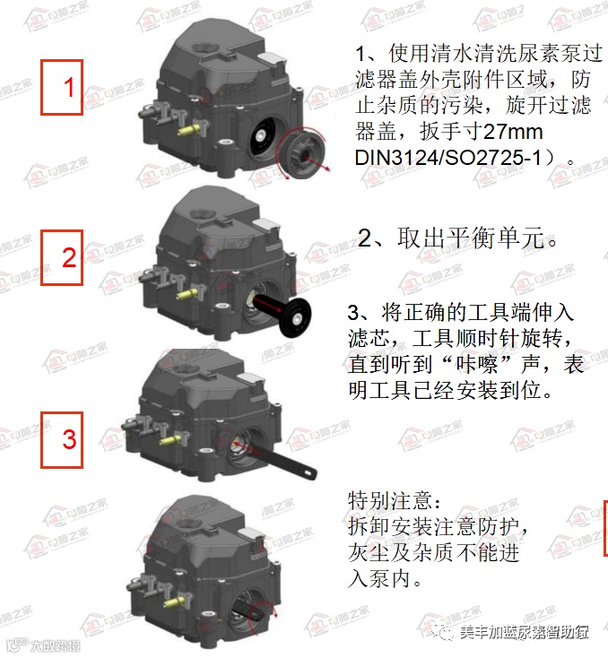 2.清洗或更换尿素泵主滤芯