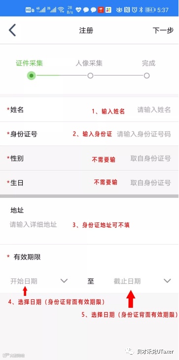 (5)完善并核对相关个人信息后,点击“下一步”