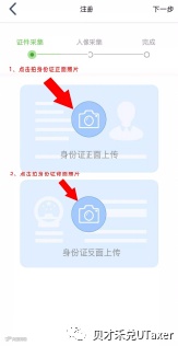 (4)准备身份证原件,上传有效身份证原件的正反面图片,点击“下一步”