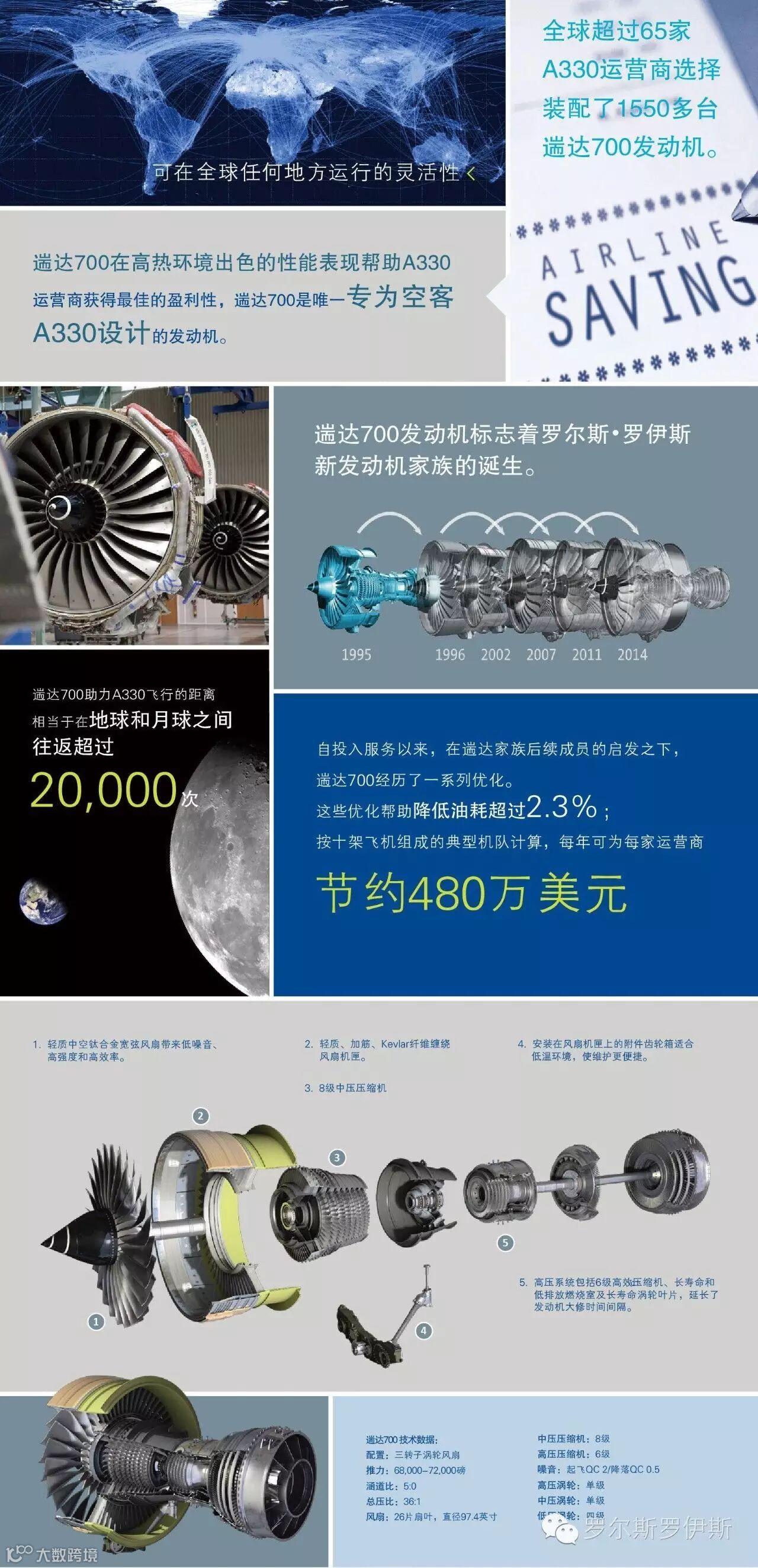 尽管是第三个推出的空客A330选装发动机,遄达700后来居上成为运营商首选,并开创了罗尔斯-罗伊斯备受青睐的遄达系列发动机时代。今天,遄达700发动机的全球市场份额达到58%,在大中华区更是接近90%。