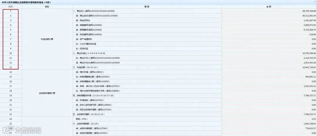 现行企业所得税年度申报表,是基于企业会计利润基础上作纳税调整计算出应缴纳的企业所得税。因此,根据填报规则企业所得税年度纳税申报表主表第1-13行次应当与利润表相关数据一致。当二者不一致时,记得要查明一下原因,对申报错误的报表进行更正申报。