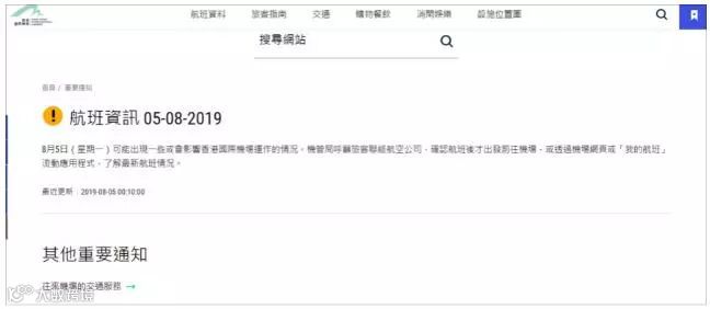 香港国际机场网站截图