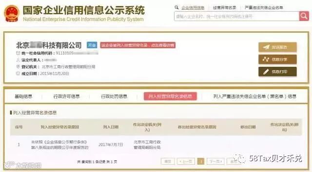 代理公司忘记给企业进行年报,企业被列入异常名录,后期又花服务费让代理公司移出。