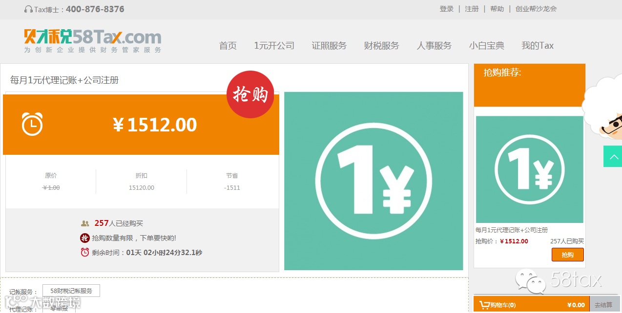 5月15日-22日58Tax热辣爆款——1元烧饼,呃,口误,是1元开公司上线啦!