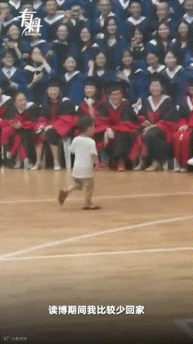 近日,在福建医科大学,3700多名学生正举办毕业典礼时,突然,一个2岁男娃闯到前排,挨个和毕业生握手。