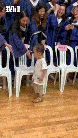 高校毕业典礼上,毕业生们排着队准备大合影时,一个2岁萌娃闯入现场...