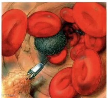 第一步,巡察:在你的血管里放进500万个纳米机器人,这些纳米机器人能够24小时在人体内巡逻,一旦发现病灶就立即锁定,确认后释放所携带的药物!