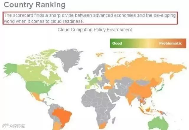下图是BSA通过对各国云计算技术综合评分后的考核报告。