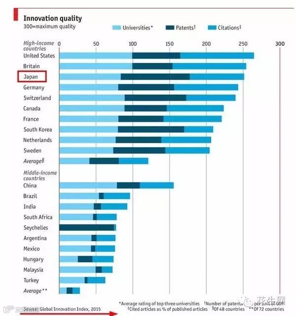 另一份来自《Economist》的报告指出,日本的国家创新质量(Innovation Quality)位列世界第三。