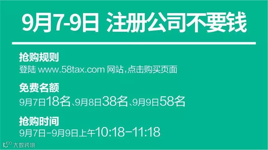 这次,我们要放大招了,9月7日-9日,每天上午开始放限量名额注册公司免费。