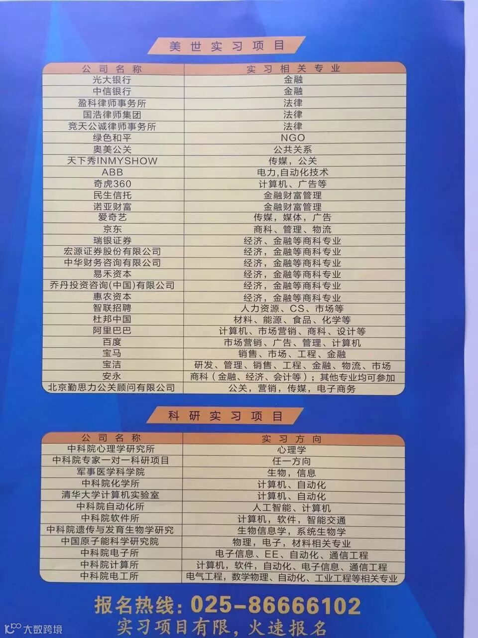 南京美世留学的实习和科研项目