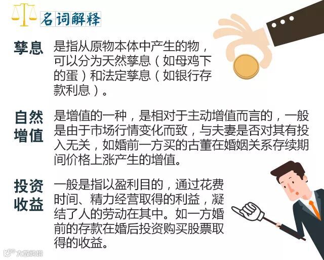 这里需要明确和区分的是孳息、自然增值以及投资收益三个概念。