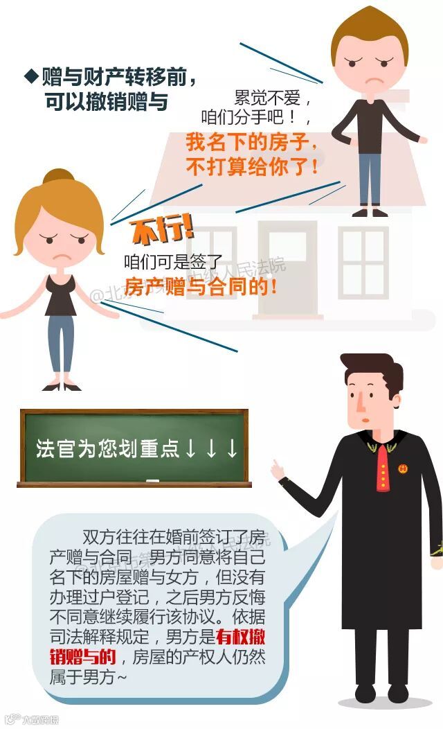 《婚姻法司法解释(三)》第六条规定:婚前或者婚姻关系存续期间,当事人约定将一方所有的房产赠与另一方,赠与方在赠与房产变更登记之前撤销赠与,另一方请求判令继续履行的,人民法院可以按照合同法第一百八十六条的规定处理。