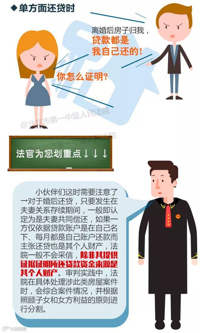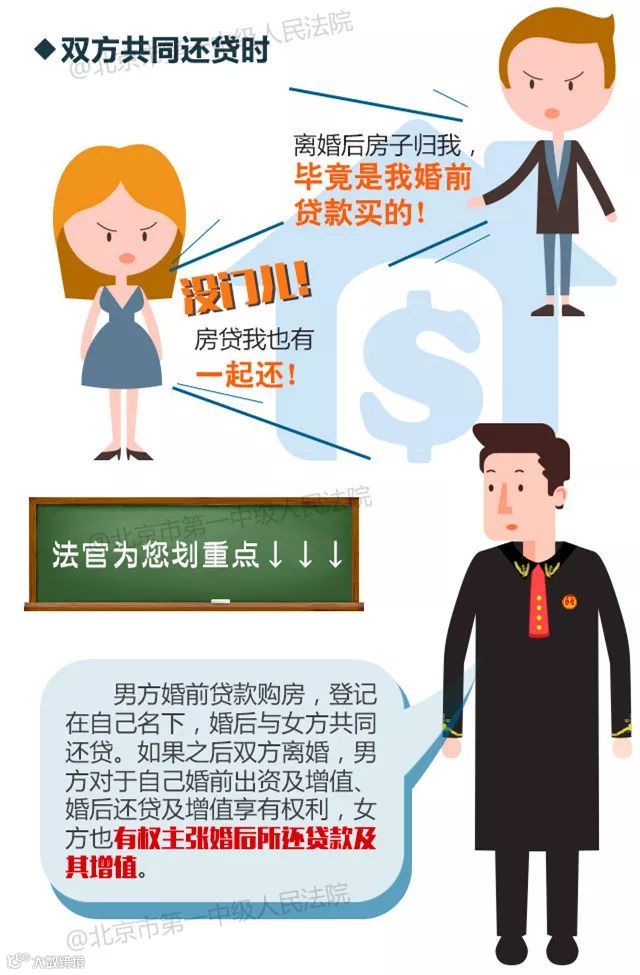 《婚姻法司法解释(三)》第十条规定:夫妻一方婚前签订不动产买卖合同,以个人财产支付首付款并在银行贷款,婚后用夫妻共同财产还贷,不动产登记于首付款支付方名下的,离婚时该不动产由双方协议处理。依前款规定不能达成协议的,人民法院可以判决该不动产归产权登记一方,尚未归还的贷款为产权登记一方的个人债务。双方婚后共同还贷支付的款项及其相对应财产增值部分,离婚时应根据婚姻法第三十九条第一款规定的原则,由产权登记一方对另一方进行补偿。