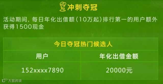 2. 活动期间,每日年化出借额≥10万且排行第一的用户还能额外获得1500元现金