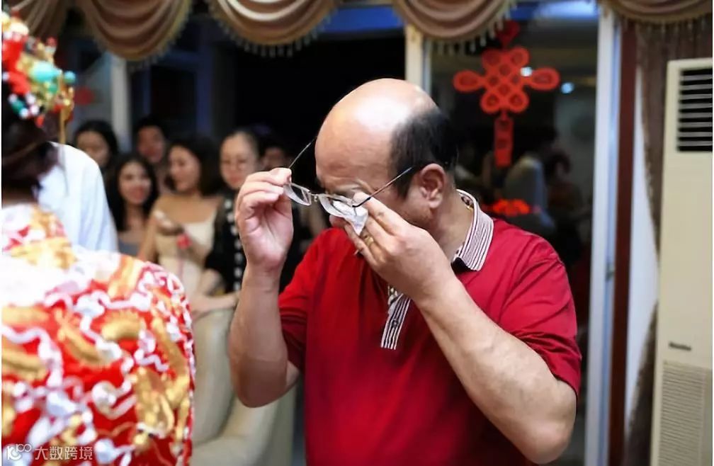看着崔玉和岳父用舞蹈的形式向自己“示爱”,新郎无法控制情绪,转过身去擦拭泪水。
