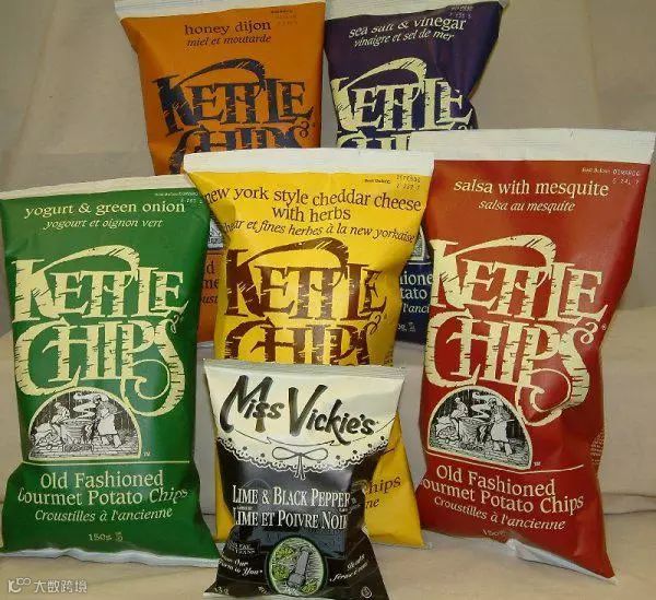 产品介绍:一般的薯片都是把马铃薯打成蓉压成片再炸,所以薄身透光,但Kettle Chips是把薯片切片后,不去皮,不冲洗来炸,所以薯味不会流失,但就明显较厚,咬下用点力,脆口更胜薄片,味道也少一点调味料味!它几年前率先在欧美大热,后来传到全世界,包括香港。这个在1982年成立的品牌,没有味精和人造色素,因为成本不低,需要近港币30元一包,比一般薯片高3倍,但仍吸引大量人士购买。薯片有黑椒味、醋味、芥末味三种口味。袋子上写着Kettle Style、Kettle Cooked、Hand Cooked、Hand Food的都是Kettle Chips。