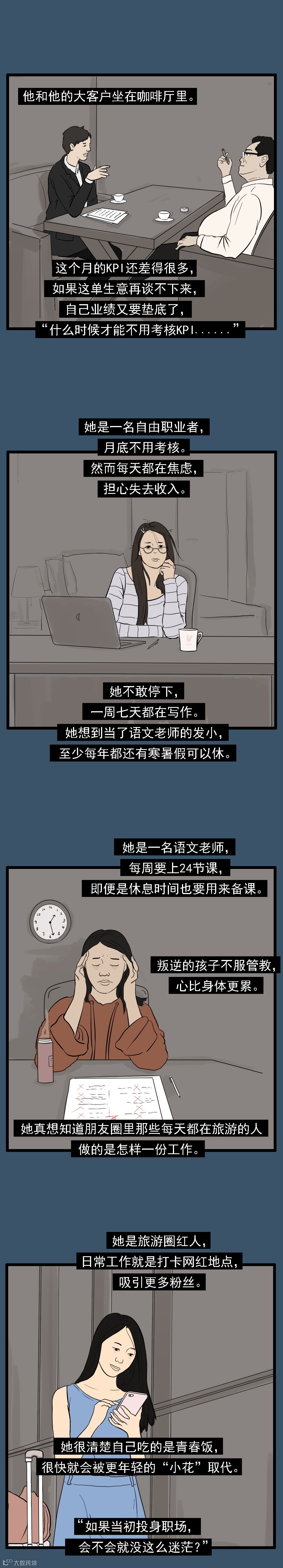 我不甘心却也无可奈何,只好把重点放在别人身上。我观察他们,观察他们的工作与生活。我发现别人似乎也有自己的烦恼,也有想要成为的人。他们光鲜亮丽的外表下也有自己的痛楚。原来我羡慕的也在羡慕别人,而我所厌弃的自己也在被别人羡慕。